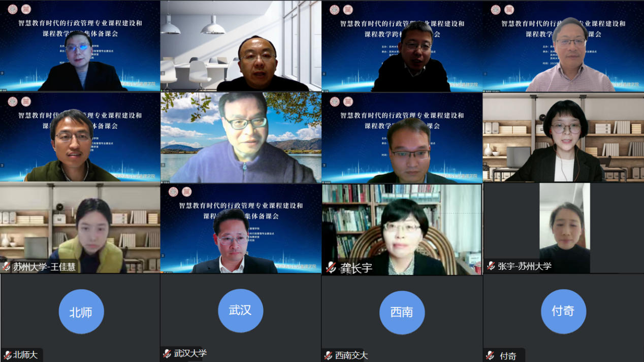 行政管理虚拟教研室全体成员以及武汉大学、北京师范大学、西南交通大学、江苏大学等兄弟院校师生参与备课会。
