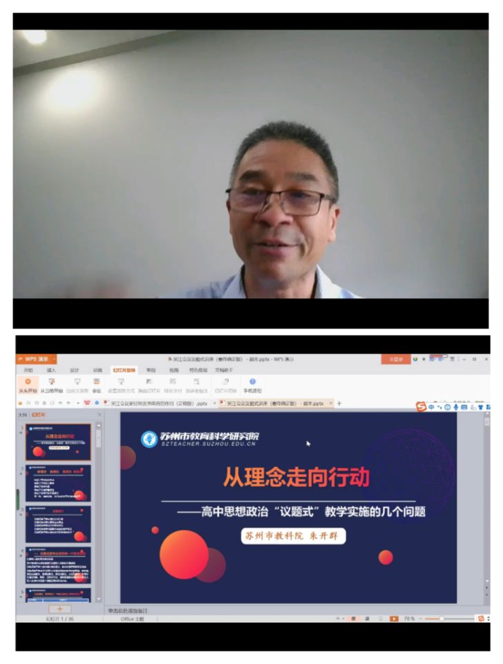 为做好本年度的教育实习工作,增进同学们对中学政治教育现状的了解,提升课堂教学能力和素养,202198日下午,江苏省中学政治特级教师、正高级教师、苏州市教科院中学政治教研员朱开群老师应邀在“腾讯会议”线上平台开展了题为“高中政治新课改背景下的‘议题式’教学”的专题讲座。讲座由哲学系副主任、思政专业负责人朱光磊教授主持,哲学系王一成老师以及2018级、2019级、2020级思想政治教育专业的同学们共同参与。