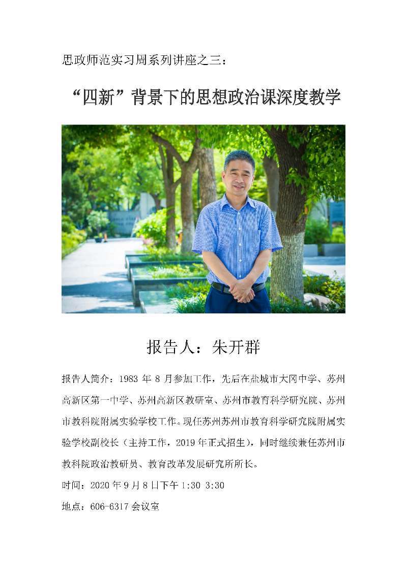 思政师范实习周系列讲座之三:“四新”背景下的思想政治课深度教学