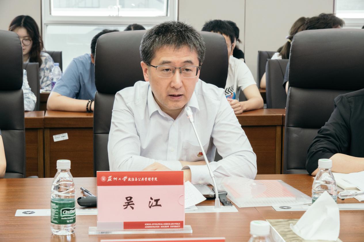 校党委常委、党委宣传部部长、党支部书记吴江以《创新赋能,融合聚力,构建高校立体化、多维度传播体系》为题,从“创新传播理念,引领新闻宣传新方向”“创新机制方式,赋能媒体融合新样态”“创新内容表达,提升新闻传播新效能”等方面系统阐释宣传工作的创新路径,以学校一篇篇接地气的报道、一幕幕深入人心的短视频为例,分享宣传工作经验。他勉励同学们进一步提升宣传意识与新闻素养,提高站位,把准方向,增强责任感与使命感,为讲好强国故事、苏大故事贡献智慧力量。