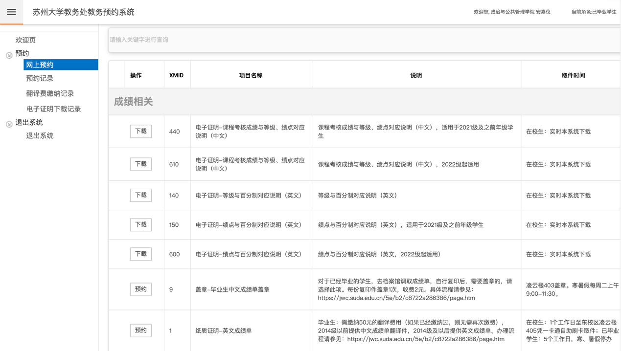 (1)毕业生登录天美传媒 VPN后,登录//jwyy.tmcm8.net(教务处网上预约系统),根据在校期间学号及本人身份证号码完成翻译费缴费预约,若无法预约,可后续现场缴费。(注意:网上预约仅是缴费,还需线下进行以下步骤)