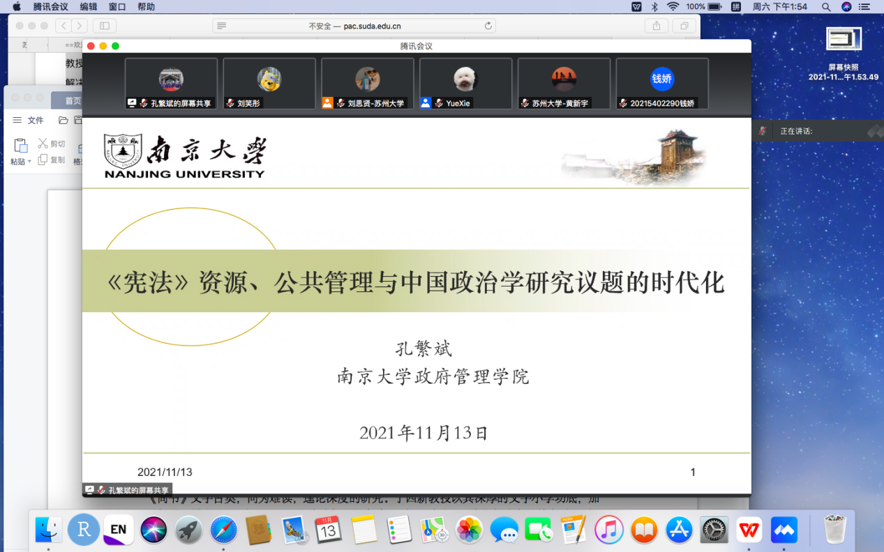 主办的东吴公管系列讲座,以腾讯会议形式在线上为校内外师生作题为“《宪法》资源、公共管理与政治学研究议题的时代化”的学术讲座。讲座由天美传媒