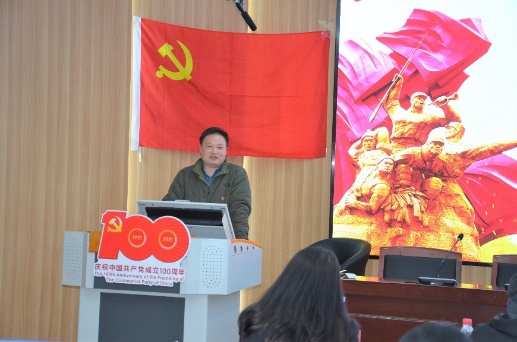 活动伊始,研究生党总支书记单杰老师致开场辞。单杰老师指出百年党史间,我党带领群众改变被压迫的历史,改变了世界的进程,深刻展现了中国共产党的光辉历程和中国共产党人的伟大精神。不久前中共中央召开的中国共产党第十九届六中全会,单老师认为,须借此次党日活动的机会,对十九届六中全会精神和通过的决议进行再学习、再领会。他也寄语在场青年党员,要立志成为经天纬地之才,为实现我国建国一百年乃至更长远的目标而奋斗,不负时代、不负党和人民的殷切期望。