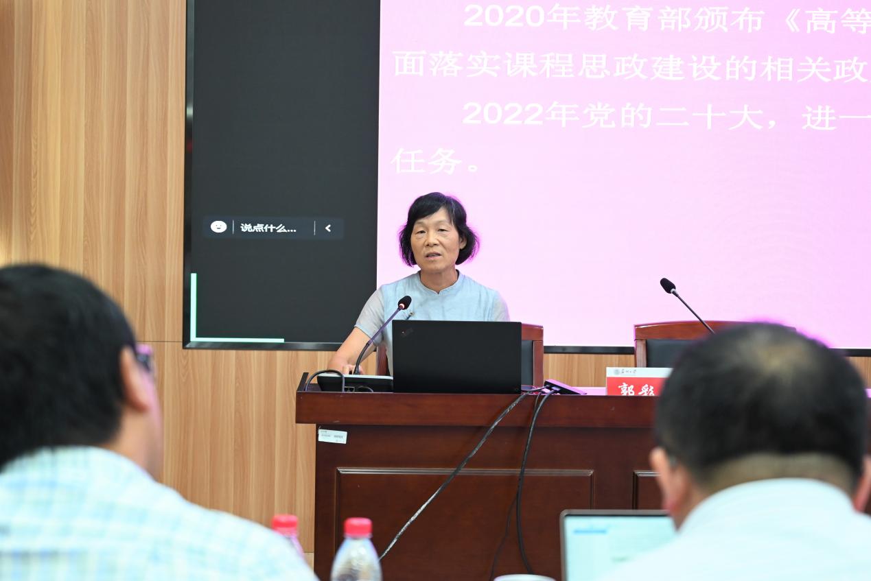 郭彩琴从高校思政的内涵缘起开始,指出其建设过程中的认识误区包含目的认识误区、课程关系认识误区,对于如何纠正误区,郭教授指出将立德树人,高质量人才培养作为课程思政的逻辑起点与实践归宿。课程思政建设目的明确性是落实立德树人根本任务的战略举措,弄清楚立德树人的本质地位后明确建设“三主”要素、“三所有”建设空间以及“三好”建设职责。针对高校课程思政建设,她认为这是全面提高人才培养质量的重要任务,要牢固确立人才培养的中心地位,围绕构建高水平人才培养体系,不断完善课程思政工作体系,教学体系和内容体系,最后引用习近平总书记的一封信为高校教师指明了教学方向。