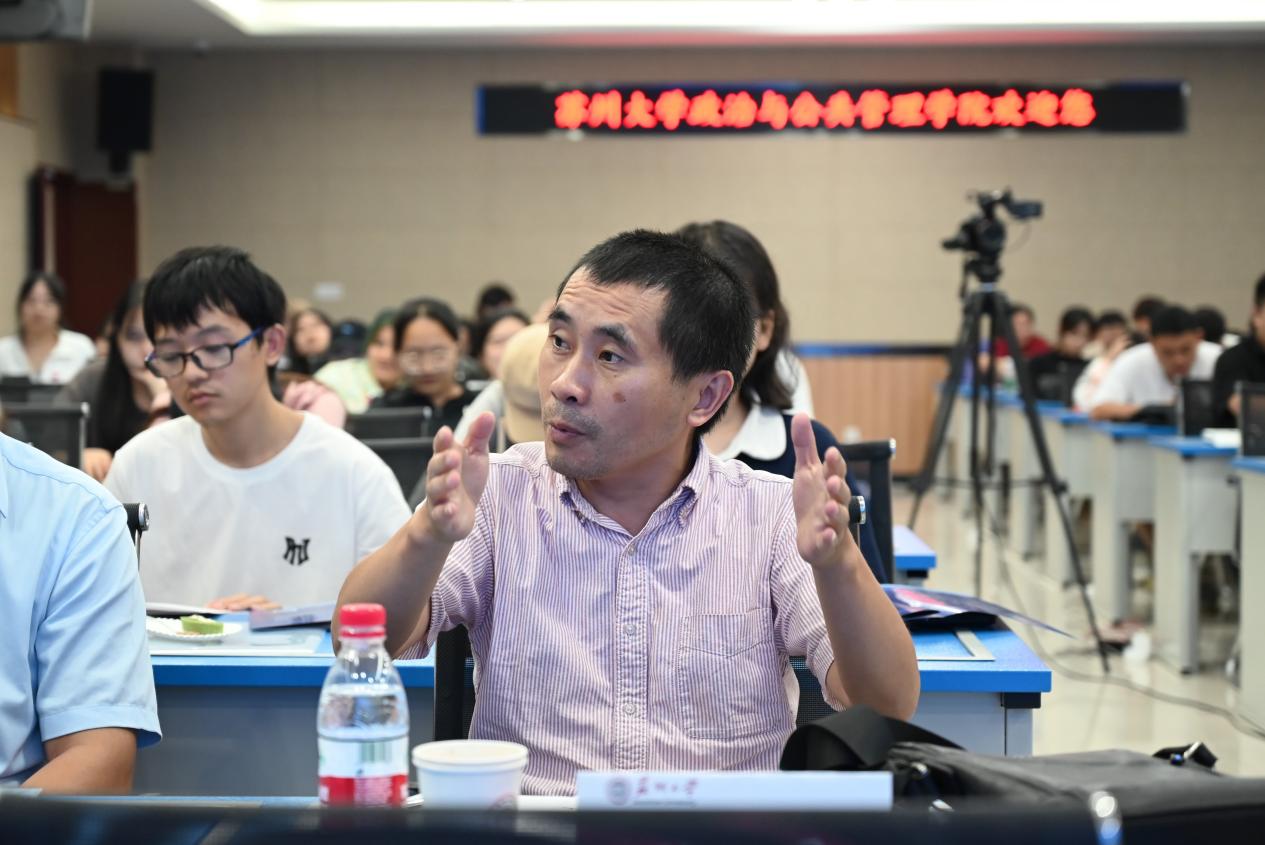 课程思政研讨环节,东南大学陈辉教授,学院郭彩琴教授、刘成良副教授、刘向东副教授分别以“‘行政管理学’课程思政的思考”、“课程思政的认识误区与纠正”、“本科生导师制拓展‘第二课堂’育人路径的实践探索”、“社会结构与‘社交距离’政策执行”等为题进行研讨发言和教学示范。