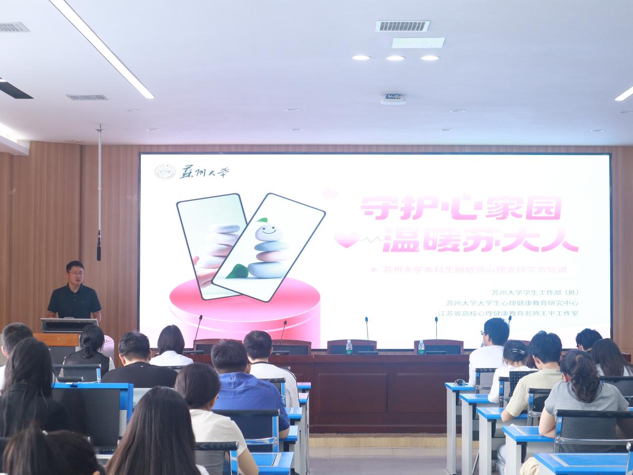 在“心理互助”篇章,张晶老师以《守护心家园,温暖苏大人 —— 本科生网格员心理支持实务培训》为题,以生动的案例导入,融合苏州特色,以漏窗、曲桥等元素为意象,传递给网格员心理互助的三大法宝“一双慧眼”“一双暖手”“一座心桥”。她以问题为导向,从如何识别心理问题、如何开展朋辈陪伴、如何获得系统支持三个维度提供方法论指导,用具体的案例、精准的范式、可操作化的步骤,引导网格员们在助人与自助中发挥桥梁作用。