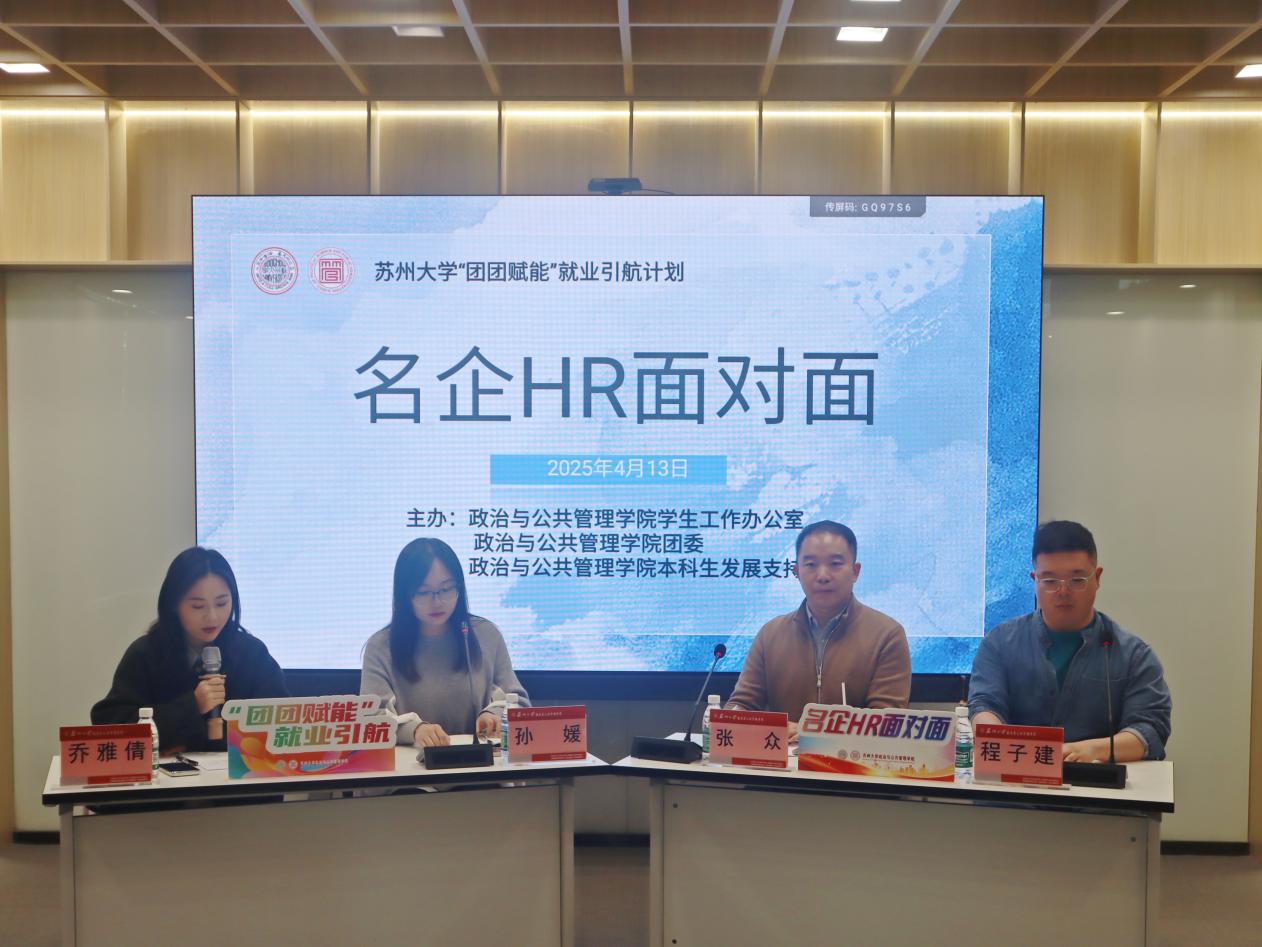 “政”启鸿图,“职”引未来。4月13日下午,由天美传媒 学生工作办公室、学院团委主办的“团团赋能”就业引航计划之成长发展周“名企HR面对面”活动在604号楼会议室举行。成长陪伴导师、2022级城市管理班班主任袁苑老师,学院学工办副主任、2021级辅导员张凯丽老师受邀参加活动,本次活动由本科生发展支持中心乔雅倩主持。