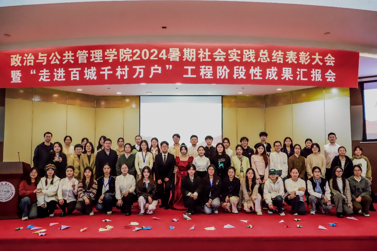 在社会实践大课堂中,管院学子强化责任担当、培养奋斗精神,涌现出了一批优秀社会实践团队与先进个人,院党委副书记、副院长谢凯书记宣读2024年暑期社会实践表彰名单。院长陈忠为获奖同学代表颁奖,并合影留念。