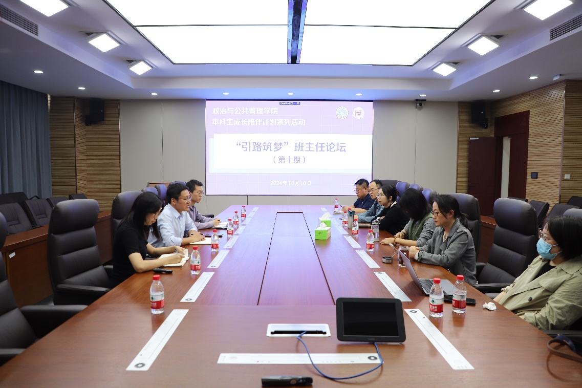 “通过这学期的谈心谈话,我明显感觉到孩子们长大了,他们都有了自己明确的努力方向,也非常阳光积极,会一起参加体育锻炼。”22级管理科学班胡淼老师欣喜于学生的成长。“除了同学们的学习发展,学生之间的人际矛盾也更加突出了,我也会更关注学生的人格健全和心理健康。”22级城市管理班袁苑老师一直做好同学们的贴心人。“咱们班家庭经济困难学生的经济压力、升学压力比较大,也希望学校学院给予更多的支持帮助”22PPE班主任邓苗老师、22哲学班班主任李薇老师体察入微,关注每一位需要帮助的学生。“感觉同学们的升学压力比较大,我会给大家降降温,解解压。”22人力班主任尹轶帅老师心中有数,手中有招。“我们班考公考编的同学比较多,后续也会有针对性和这部分同学进行谈话指导。”22行管班班主任阮玉辉老师将把握关键,精准指导。在交流环节,各位班主任分享了开学初谈心谈话的心得体会,交流了本班学生的整体情况、需要重点关心帮助的学生对象以及下一阶段的精准陪伴举措。