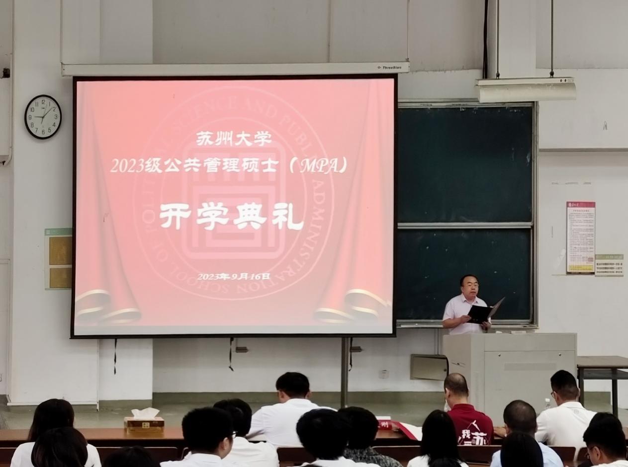 2023年9月16日上午,天美传媒 2023级公共管理专业硕士(MPA)新生开学典礼在独墅湖校区隆重举行。学院党委书记孙磊,副院长庄友刚,党委副书记、副院长谢凯,MPA教师代表黄建洪,MPA办公室主任李靖,2023级全体MPA研究生,2022级MPA研究生代表出席了本次典礼。典礼由副院长周义程主持。