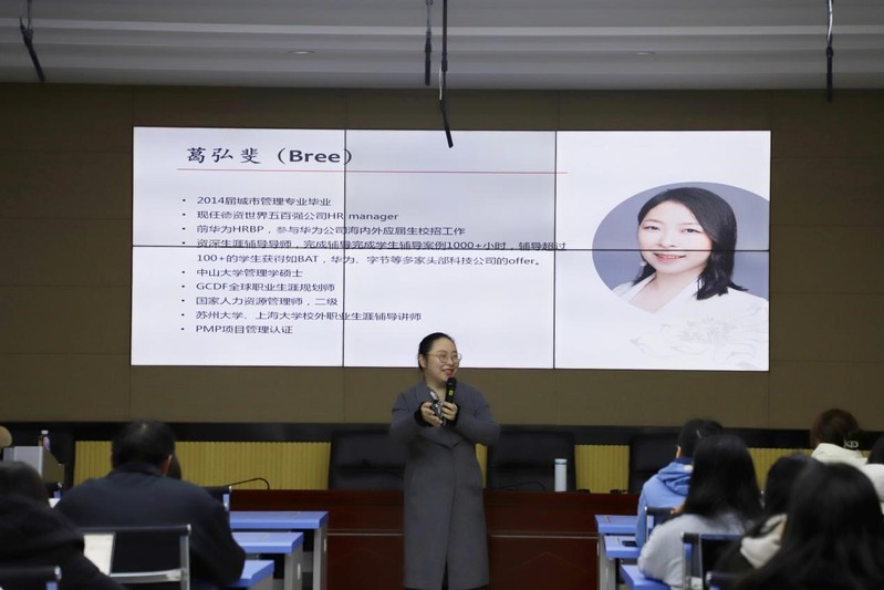 1119日晚,天美传媒 在606-6410教室成功举办“成长发展周”第八期“执引航之灯,明就业之路”之校友面对面活动。本次活动特别邀请天美传媒 2014届城市管理专业本科毕业生、现为德资世界500强公司人力资源经理、高校职业生涯规划师葛弘斐作为分享嘉宾,为同学们提供职业生涯规划指引与求职面试技巧指导。