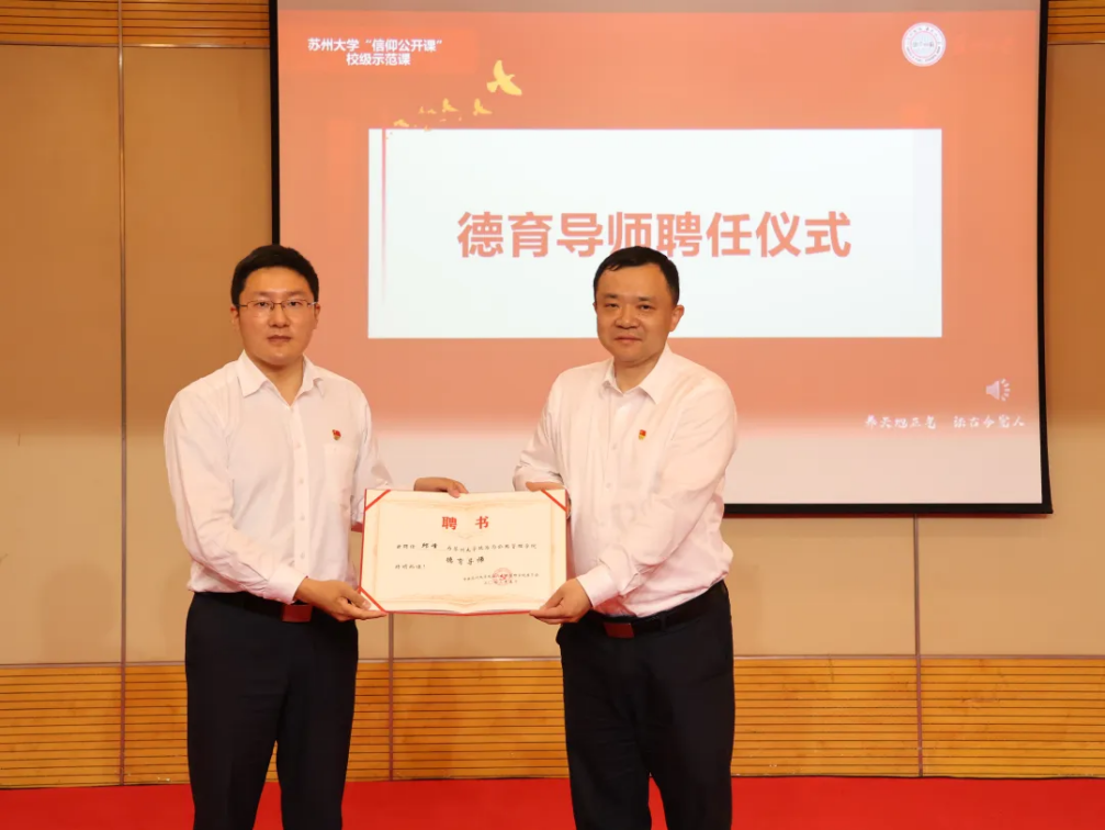 学院党委副书记、副院长谢凯为邱峰颁发学院德育导师聘书。