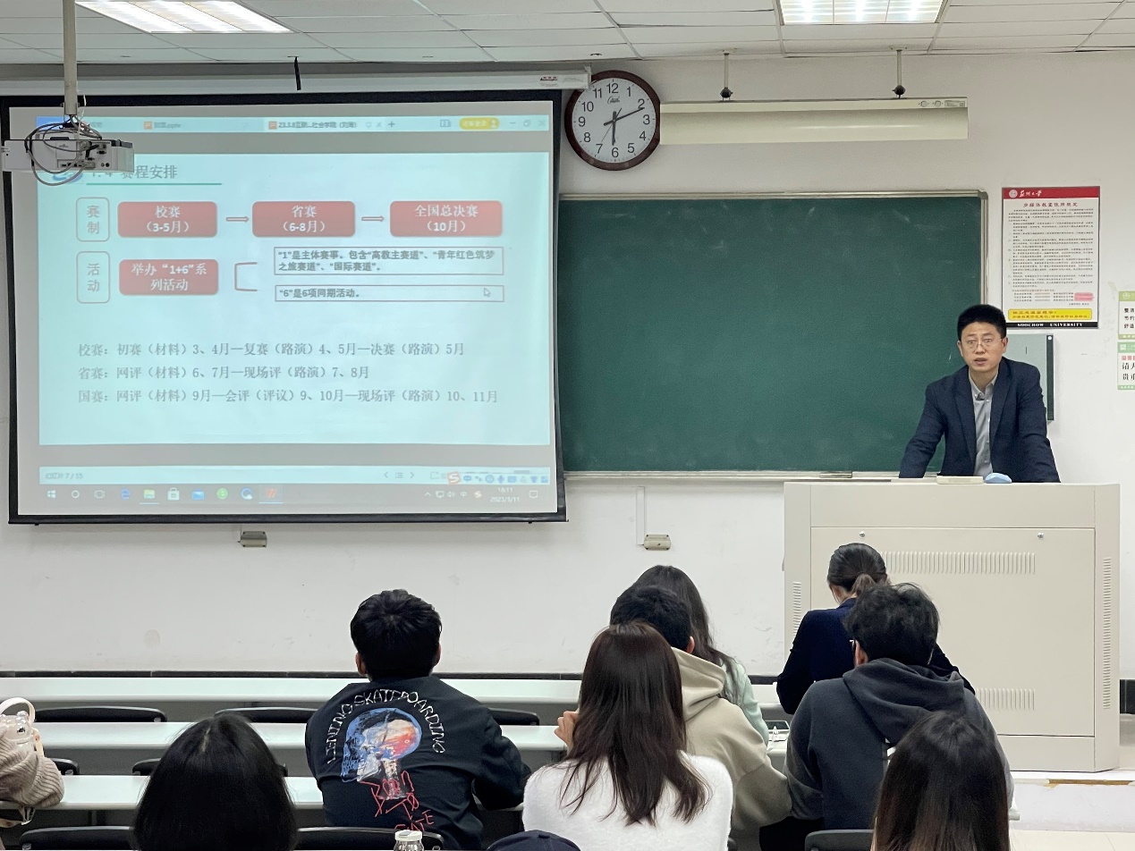 通过本次主题讲座,同学们对于“互联网+”大学生创新创业大赛有了更深刻的了解,将进一步消化吸收,积极参赛,以赛促学,以赛促进,在学校学院的大力支持下,发扬“四敢”精神,产出更多优质的“新文科”项目,为学院学校的高质量发展贡献力量。