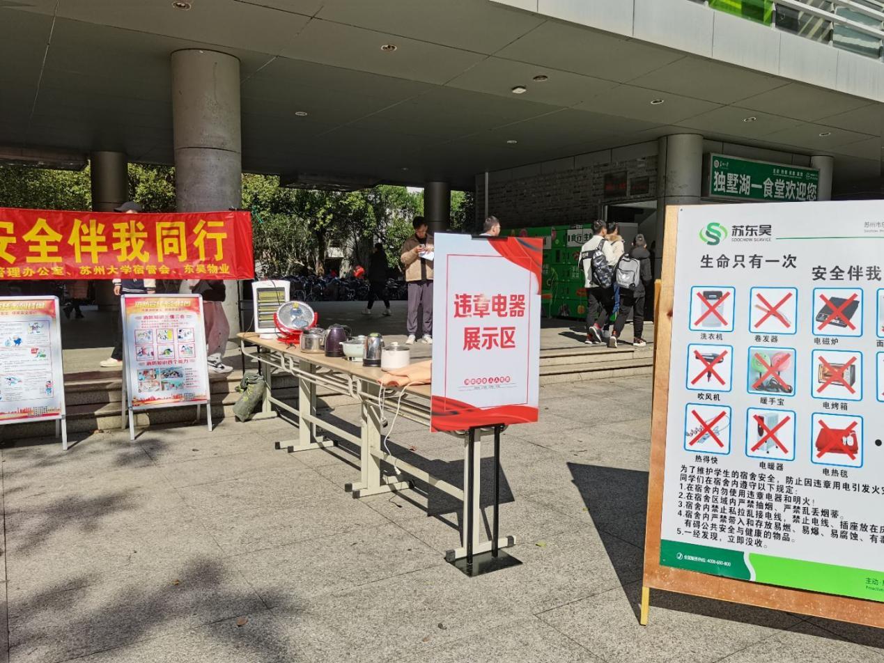 团委主办,政治公共与管理学院宿管会和东吴物业联合承办的违禁物品展示活动在一期食堂楼下顺利进行。