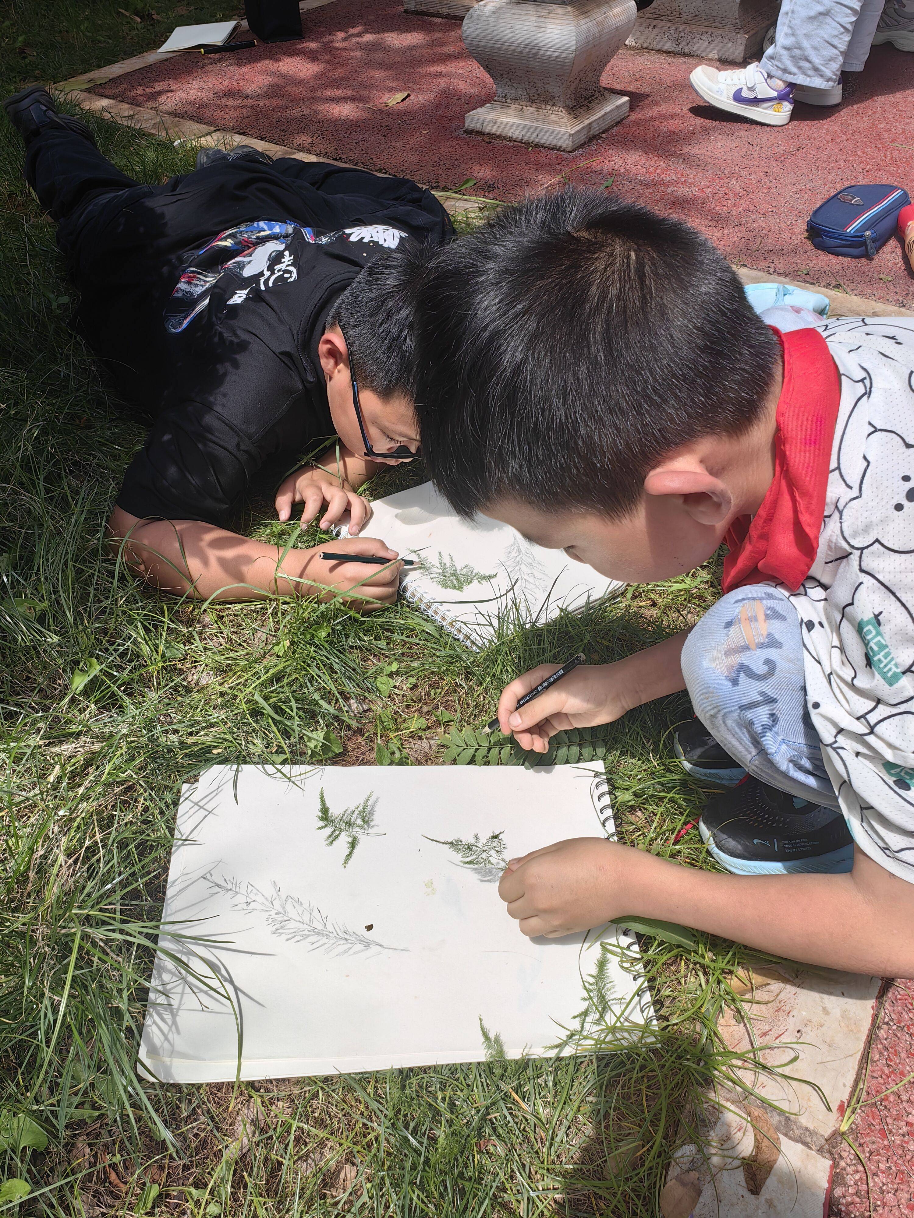 图1 孩子们在比对着植物画中的影子 林山豪摄