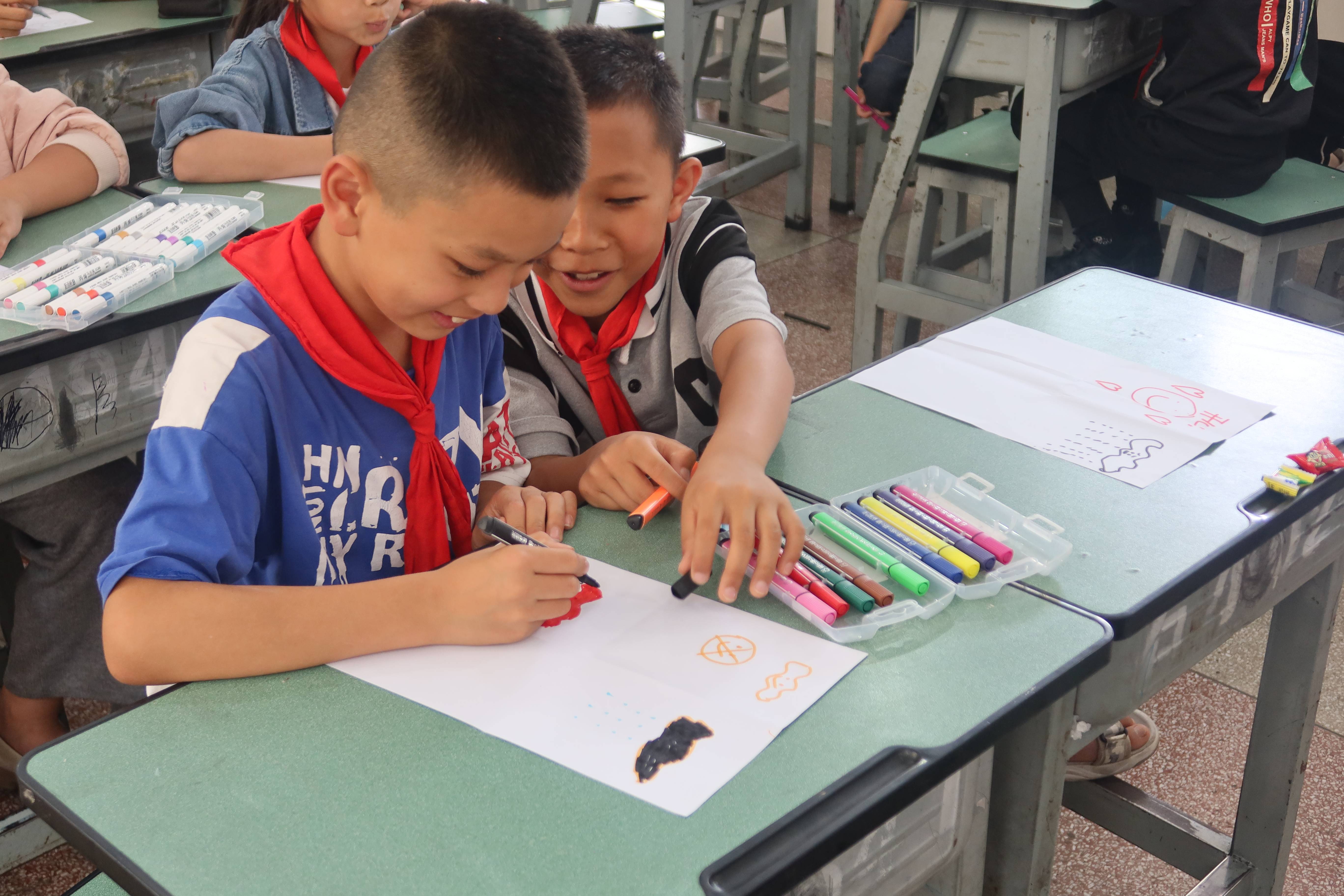 图3 孩子们在纸上绘制情绪四宫格 林山豪摄