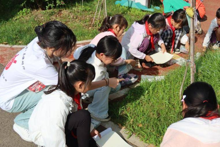 《生命的影子》课上,团队成员倪立涵用简单的实验演示,清晰讲解光直线传播及影子的产生的原理。“画影子”活动,引导孩子们将校园中各种动植物的影子记录在画纸上,孩子们都觉得饶有趣味。课程结尾,倪立涵小结道:“对影子的接纳与对话,本质上是一场关于勇气的生命仪式。”这堂课,让孩子们在童真中触摸成长的深意,体悟光影里的成长哲思。