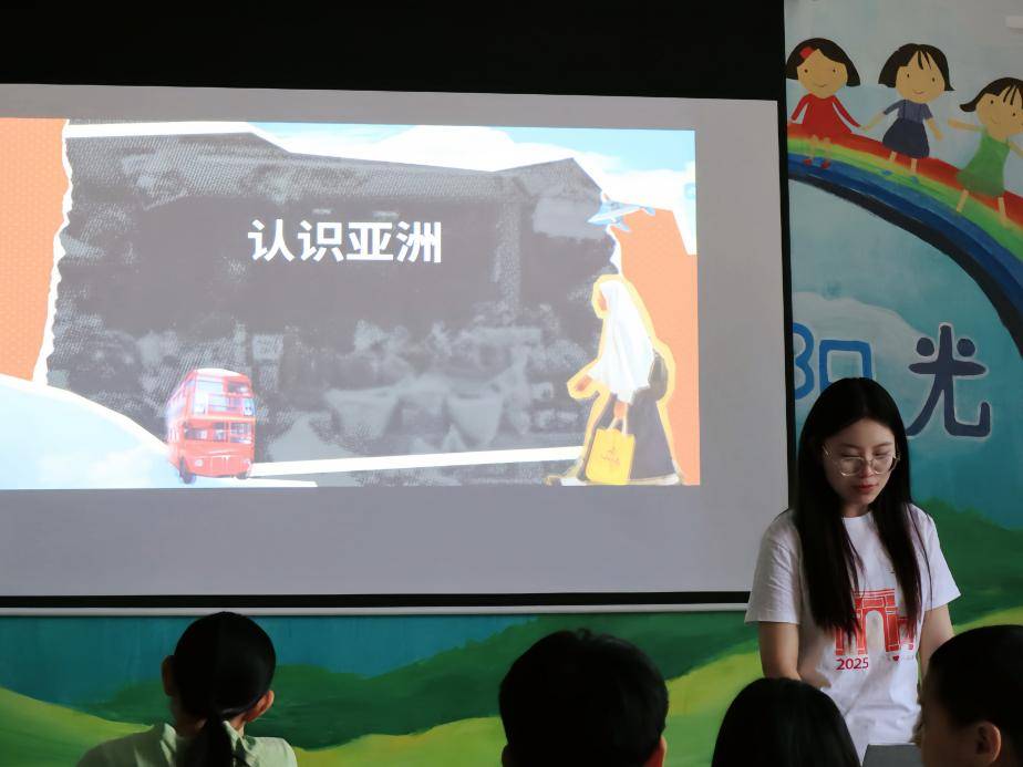 擘画山河地理,开启寰宇之窗。团队成员姜浠劼以地图为介,为暑托班的孩子们带来了一堂亚洲国家探索课。借助图文展示、互动问答,带领孩子们领略了各国的风光之异、民俗之趣、文化之彩。从富士山的雪顶到泰姬陵的穹顶,从印度洒红节的绚烂到韩国泡菜的酸香,一洲一国间,孩子们感受着多元文明的独特魅力,一张张专注的脸庞映入眼帘,一个个鲜活的国度在他们心中埋下了认知世界的种子。