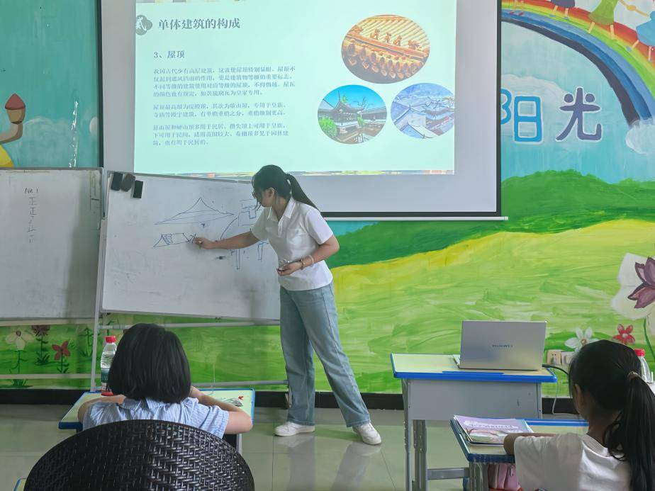 图 3 团队成员陶嘉琳为孩子们讲解不同建筑类型 张茹摄