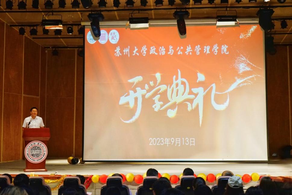 2023级新生开学典礼暨“大学第一课”在独墅湖校区601音乐厅隆重举行。学院党委书记孙磊、院长陈忠、副院长庄友刚、副院长周义程、各系科主任、本科生班主任、研究生导师代表、科研与研究生办公室老师、全体辅导员以及2023级全体研究生、本科生和留学生代表参加了本次活动。活动由院党委副书记、副院长谢凯主持。