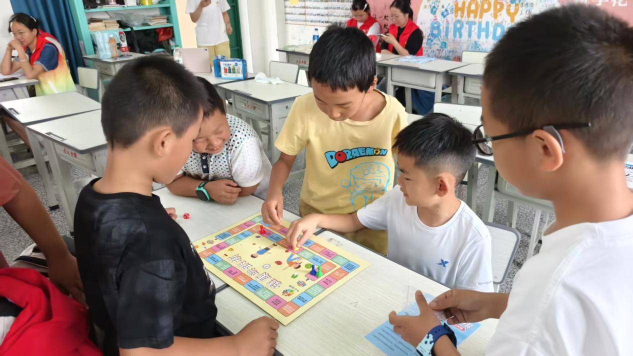 图为《不做脆皮青少年》课堂上,小朋友们在玩“健康跳棋”的过程中学习健康知识,小朋友们表示在玩中学、在学中玩可以帮助他们进一步加深对知识的理解。唐吏滋 供图