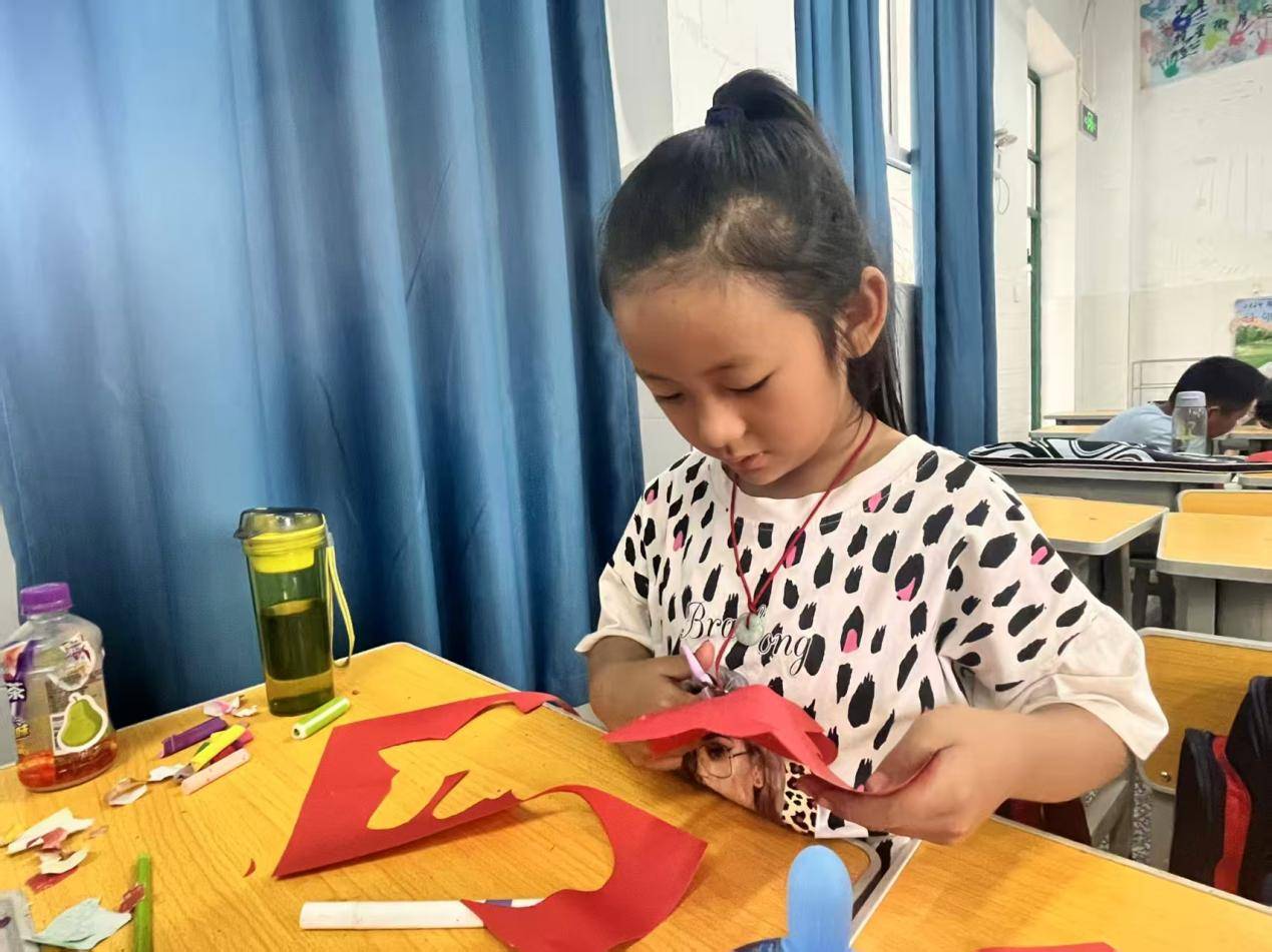 图为支教地小朋友在讲授环节结束后自己动手实践,她认真细心地完成实践任务,在手工制作中培养专注力与创造力。程靖雯 供图