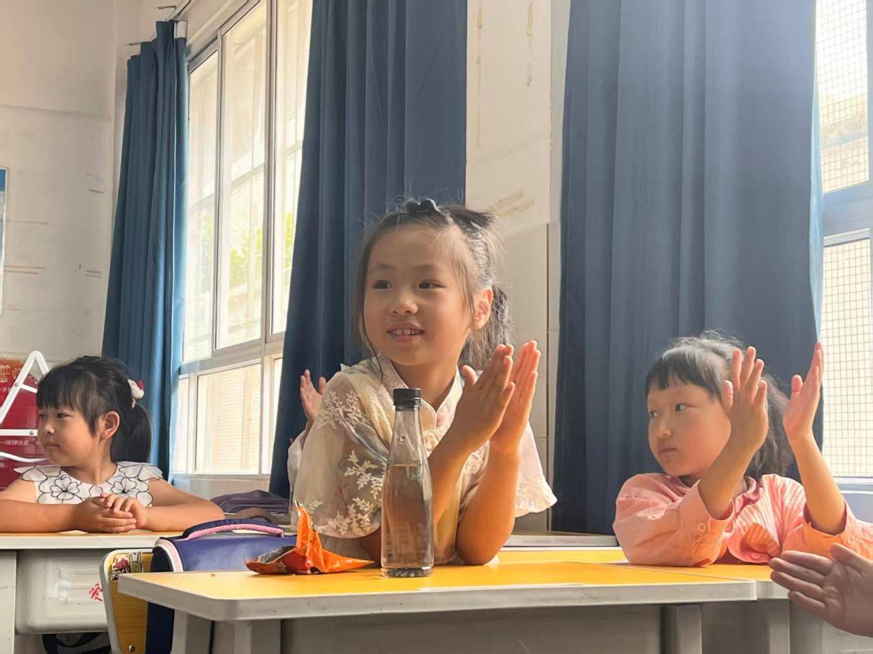 图为模拟政协活动“汇报展示”环节中,小朋友们认真听其他“小委员”分享活动成果,为精彩发言鼓掌,活动氛围轻松活泼、充满乐趣。程靖雯 供图