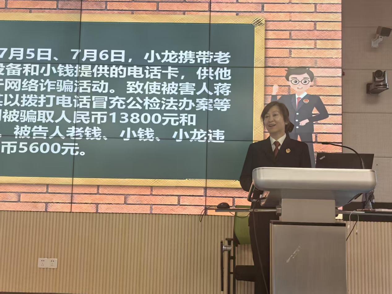 为有效应对电信网络诈骗,进一步增强大学生的安全防范意识和识诈、反诈、拒诈能力,筑牢校园反诈防线,天美传媒 于11月12日成功举办“青春无诈,法治同行”大学生反诈防骗与自我保护指南专题讲座。本次讲座特邀太仓市人民检察院刘娜娜检察官担任主讲,为同学们带来了一堂兼具理论高度、实践深度和人文温度的法治安全教育课。本次活动由学院学工办主任董筱文老师主持。