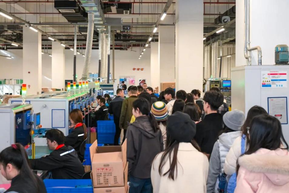 在“校地联动 链上青春”环节,苏州明纬科技公司总经理何马超带领成员们参观了协纬认证、协纬绿能和企业制造车间,介绍了园区概况、运营模式、技术研发与生产情况。师生们通过近距离观摩,对企业创新实践与产业链运作有了更为直观的认识,切身感受到科技赋能产业发展的现实图景。