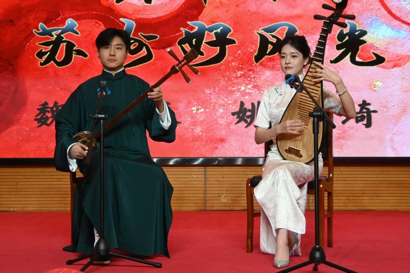 魏嘉辰、姚诗琦带来评弹《赏中秋》《苏州好风光》,吴侬软语间尽显江南曲艺的独特韵味;陈伦香、管文钦、李慕紫、浦玲瑜组成的舞之炫舞团演绎舞蹈《Jump》,动感舞姿点燃全场活力;教师团队的歌曲串烧温情开唱,师生同台的温馨画面,让冬日暖意在会场中悄然流淌。
