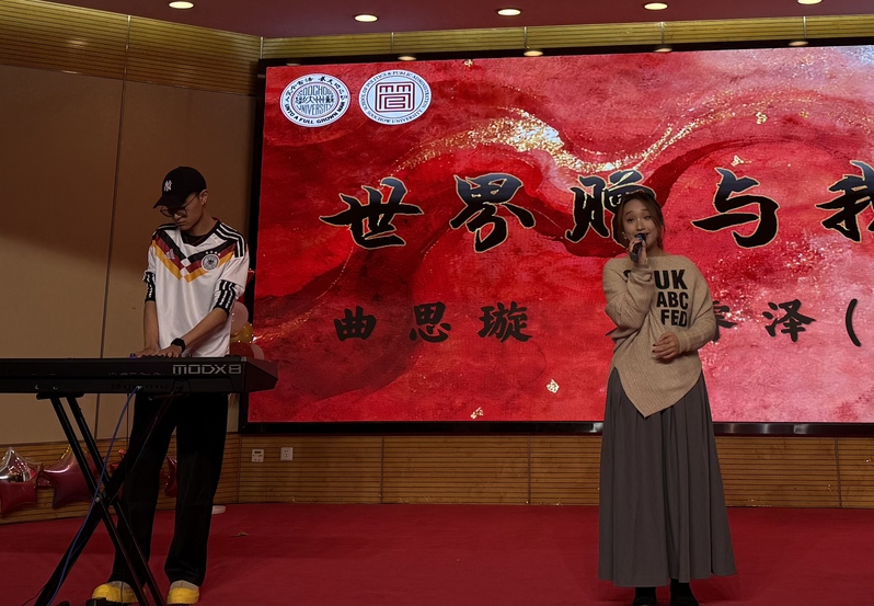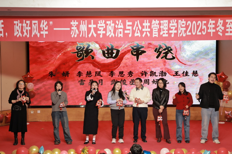 进行完颁奖环节后,冬至晚会第一篇章“冬意浓,笑语绕梁”正式开始。首先,曲思璇演唱、袁睿泽伴奏的《世界赠予我的》用婉转的歌声瞬间俘获现场观众;随后,陈忠院长演唱《多情的土地》,为晚会再添惊喜亮点,陈院长用美声演绎歌曲,在歌曲间奏中穿插了旁白“苏州是个多情的土地,管院也是个多情的土地,让我们共同耕耘好这片土地”,让在场的师生动容。