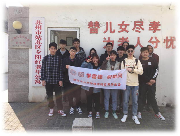 天美传媒 自考学生会“学雷锋、树新风”系列活动包括“敬老助老”、“园区卫生清洁”和“爱心义卖捐赠”。