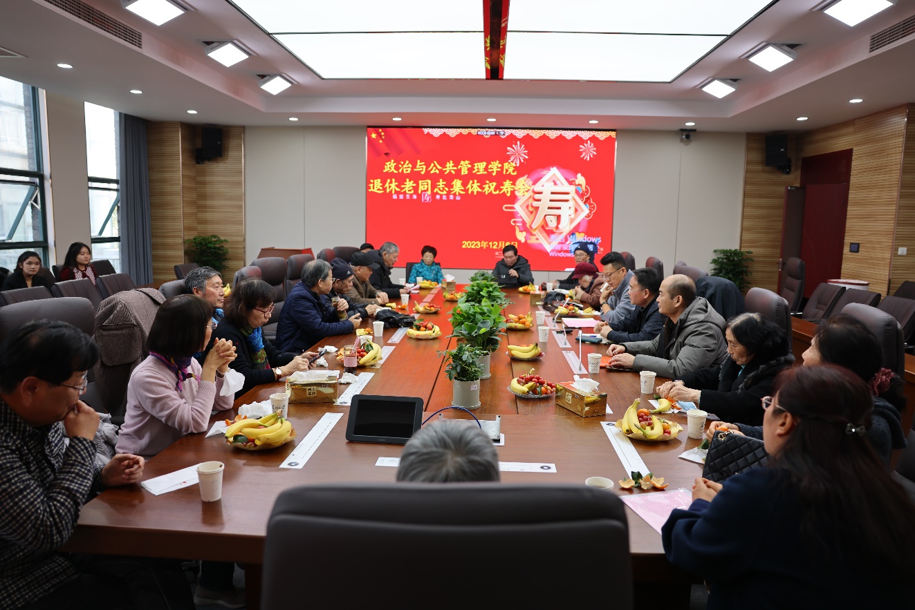 莫道桑榆晚,为霞尚满天。为弘扬中华民族敬老爱老的光荣传统,学院于12月6日下午在6317会议室举行了2023年退休老同志集体祝寿会。学院党政班子成员、分工会主席、退休老同志、师生代表参加了集体祝寿会。祝寿会由院退协负责人、退休党支部书记沈磊主持。