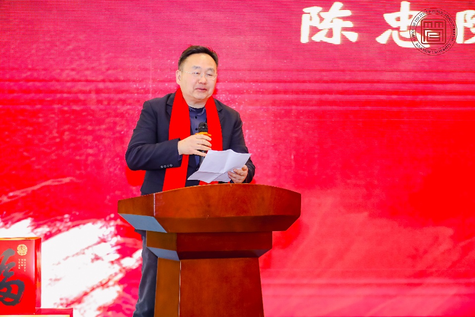总结表彰大会由院党委书记袁冬梅主持。她向全体与会者致以最诚挚的新春问候,并简要介绍了活动背景和议程,指出本次活动既是总结回顾,更是凝聚共识、共话未来的平台。院长陈忠在致辞中系统回顾了学院2025年在人才培养、学科建设、科学研究、社会服务等方面取得的扎实成绩。陈院长表示,这些成绩离不开全体教职工的辛勤付出与团结协作,2026年学院将继续深化内涵建设,推动各项事业再上新台阶。此次活动的赞助方苏州银行申毅彬在致辞中回顾了银校合作历程,对学院给予的支持表示感谢,并期待未来进一步拓展合作领域,实现共赢发展。