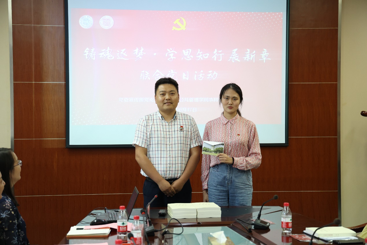 天地有胜意,山水总相逢。党委宣传部党支部的党员教师为毕业生党员代表送上了“毕业礼”——《习近平书信选集》第一卷和印有校园美景的手写明信片,祝福毕业生党员前程似锦,所愿皆可达。