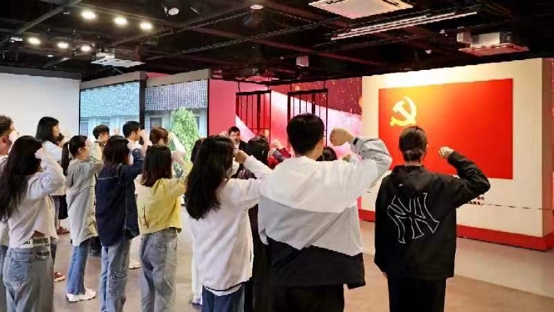 走进“青春誓言”宣誓区,全体成员面向鲜红的党旗,重温入党誓词坚定入党初心,筑牢忠诚信念。