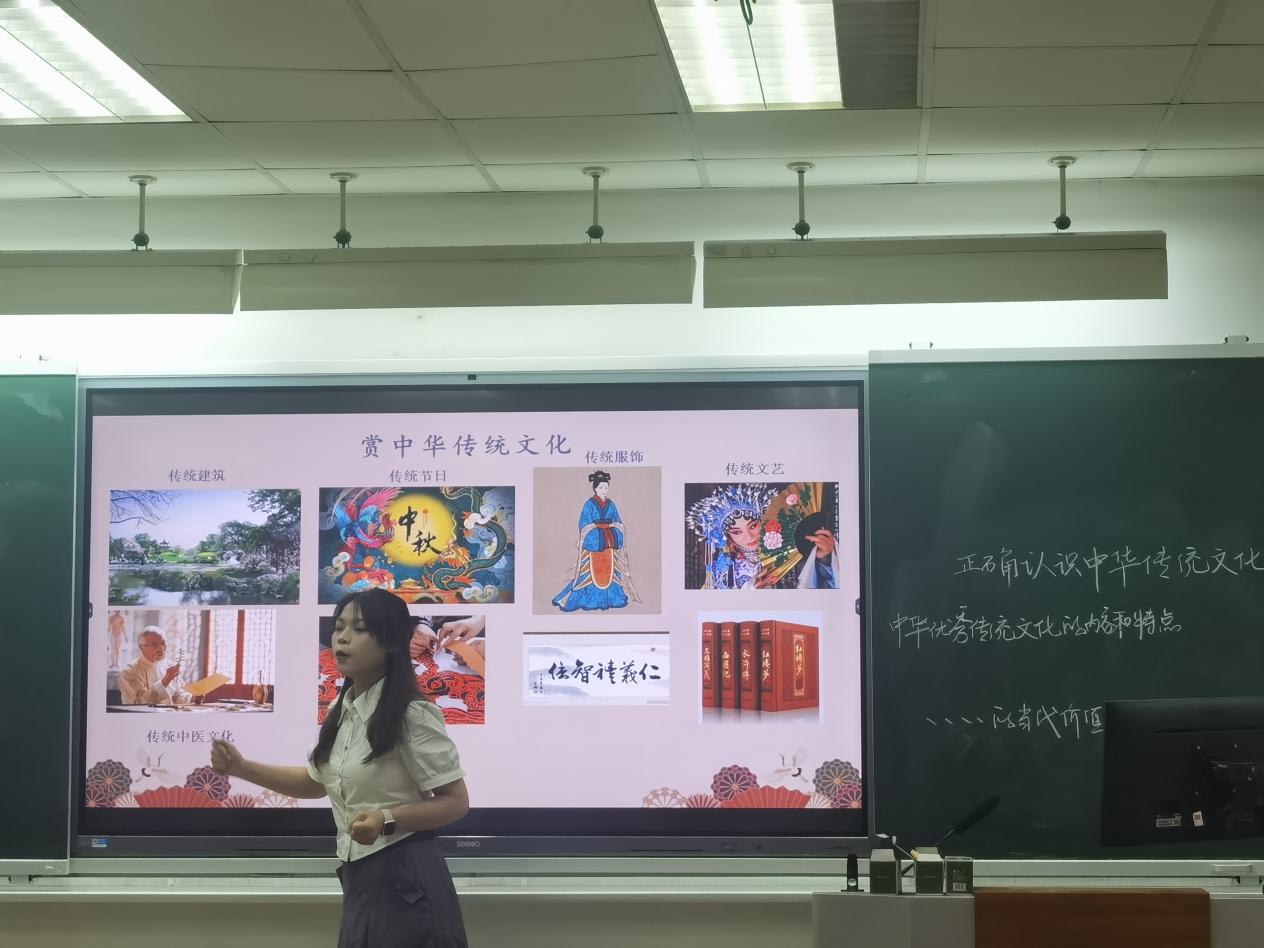 本次比赛分为两个环节,课件制作和模拟授课。模拟授课选题提前六个小时发布,选手现场抽签决定上场顺序,进行十分钟的课堂教学展示。魏可欣同学采用小组探究的教学方法,通过熟知的“娃哈哈”国货品牌讲述如何促进非公有制经济的健康发展,帮助学生清晰梳理知识逻辑、激发学生学习兴趣,充分体现了以学生为中心的教学原则。胡传宁同学采用议题式教学法讲述“始终走在时代前列的中国共产党”,通过总议题“百年大党何以始终走在时代前列”展开三个子议题的教学,在教学过程中融入党的二十大精神,紧贴时政,深入浅出。任秋雨同学结合丰富多彩的案例讲解“继承和发扬中华优秀传统文化”,条分缕析,层层推进,培养学生的文化自信与对中国特色社会主义文化的认同感。马艳同学以一条简明扼要的线索将两个子议题贯穿在总议题“人类制度史上的一次伟大创造”之下,讲述我国的根本政治制度“人民代表大会制度”,节奏明快,思路清晰。夏思雨同学以“中国式的现代化”为线索,分成三个子议题具体阐释中国发展的方向、道路和命运,内容丰富、图文并茂、生动有趣。