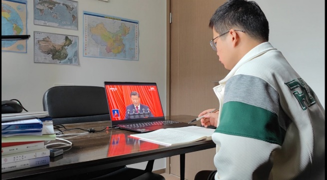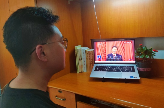 本科生第一党支部2019级城市管理专业郭新宇表示:聆听报告,跟随习近平总书记回望十九大以来的五年,纵观新时代十年的伟大变革,令人心潮澎湃!国际上看,彰显大国外交,促进国际合作,推动构建人类命运共同体,坚定维护国际公平正义;国内发展而言,紧抓人民群众最关心最直接最现实的利益问题,坚持尽力而为、量力而行,深入群众、深入基层,着力解决好人民群众急难愁盼问题,扎实推进共同富裕。铺开立体的中华画卷,这十年,我们深潜入海、不断求索,航天探月、赓续征程;注重生态保护,绿水青山就是金山银山;强军铸魂、深化改革,人民军队面貌一新;纠治“四风”、自我革命,确保党永远不变质、不变色、不变味。时代呼唤着我们,人民期待着我们。作为青年学生,我们应当牢记前辈嘱托,矢志不渝、笃行不怠,方能不负时代!