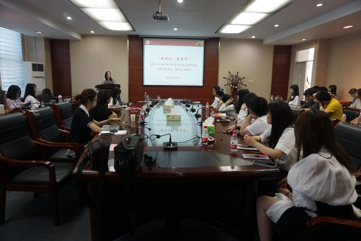 党委副书记、副院长为2021届毕业生党员讲授专题党课。本科生第一党支部书记董筱文、本科生第二党支部书记张凯丽及2021届毕业生党员参加党课学习。