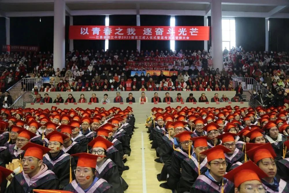 2023年2月24日上午,江苏省清江中学2023届高三学生18岁成人仪式暨高考百日誓师大会在清江中学体育馆隆重举行。大会的主题是“以青春之我 逐奋斗光芒”。天美传媒